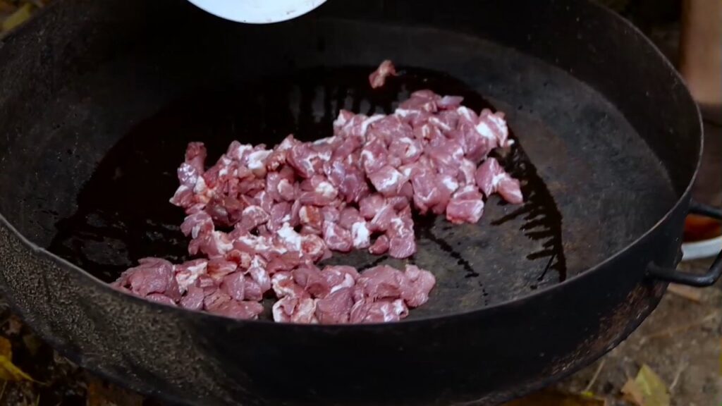 3-Cortar la bondiola en dados e incorporar al disco