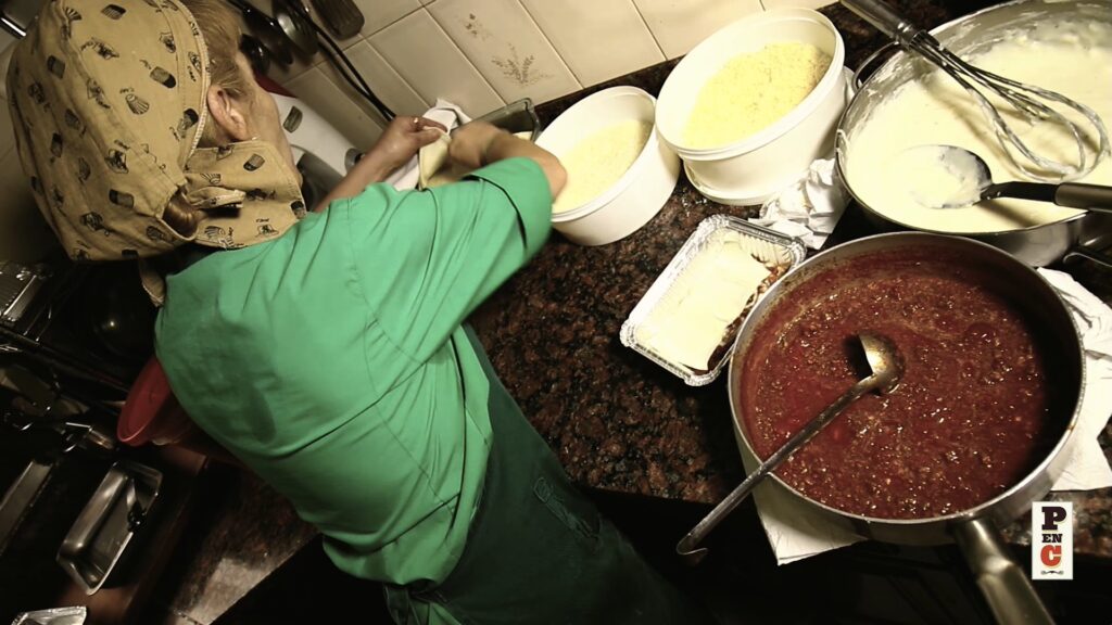 “Quiero mantener la cocina de la abuela, de mi mamá, práctica, que te sientas a la mesa y comas, sin mirar la decoración del plato,. trabajé tantos años con la decoración que dije ahora quiero hacerlo como en casa. Al principio salíamos con el sartén directamente a la mesa, pero como no me alcanzan para dejarlos, salimos con las bandejas”, explica Rosa Iachetta, la anfitriona del lugar, que agrega: “la pasta se une con la salsa en la sartén, la pasta tiene que estar sabrosa, sale más rica mi amor, sino todo el trabajo que hiciste lo perdés”. Rosa se había criado entre hornallas, a los 17 años era bachera pero tenía un ojo en el enjuague y otro en las comandas y cuando llegaba a su casa probaba: “así salió la mía cuccina”, dice.