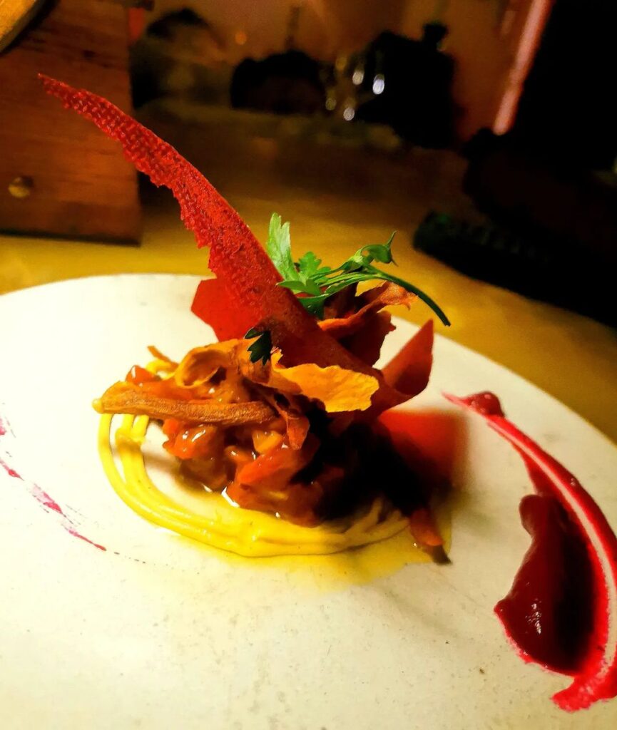 Martín Altamirano se hizo cargo de este lugar, ubicado entre Ascochinga y Jesús María, hace casi 8 años. Se trata de un caserío ubicado al lado del ex tambo de la estancia La Paz. Acá decidió continuar su propuesta de “La Torgnole” (sopapo en francés) que había arrancado en el barrio de Vicente López en Buenos Aires. Si bien nosotros no conocimos su precuela porteña, da la sensación que Altamirano encontró en este lugar el mejor aeropuerto para desembarcar todas sus tretas, artimañas y alquimia que desplega en la cocina. Sabe como encantar y esconderá los hilos todo lo que dure la velada, buscará eliminar preconceptos y no te dejará siquiera tomar ninguna decisión. Todo lo que ocurre en esa degustación ya ha sido totalmente proyectado. “La Torgnole” es el otro yo del artista, fusiona sus dotes como músico (toca la guitarra, el bajo y el piano). De hecho, este último se encuentra en uno de los espacios alistado para que alguien le extirpe melodías. Muchas veces el mismísimo chef.