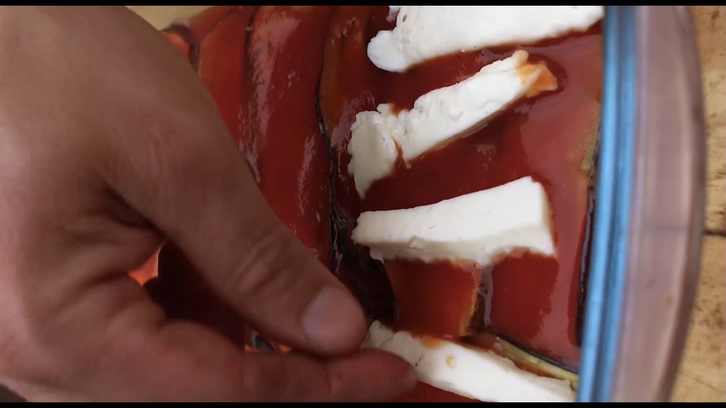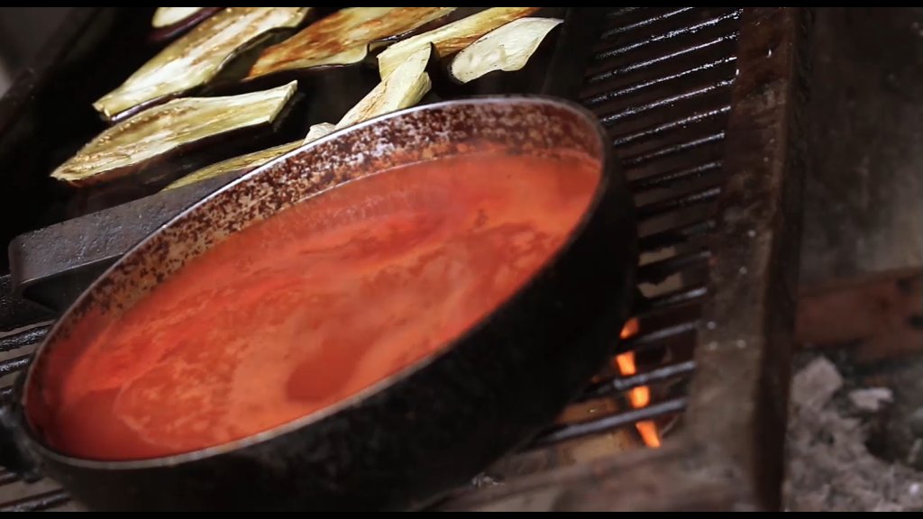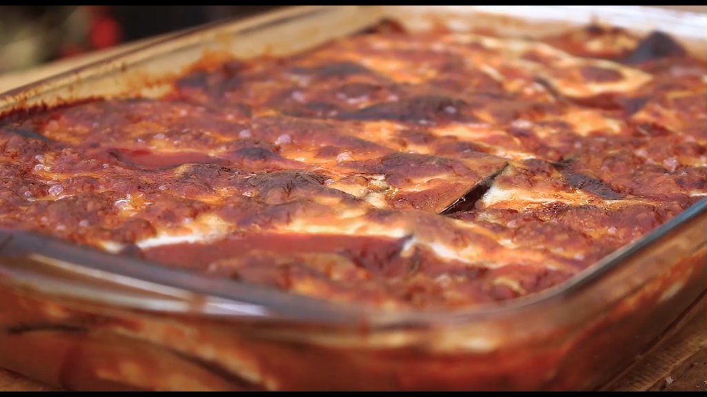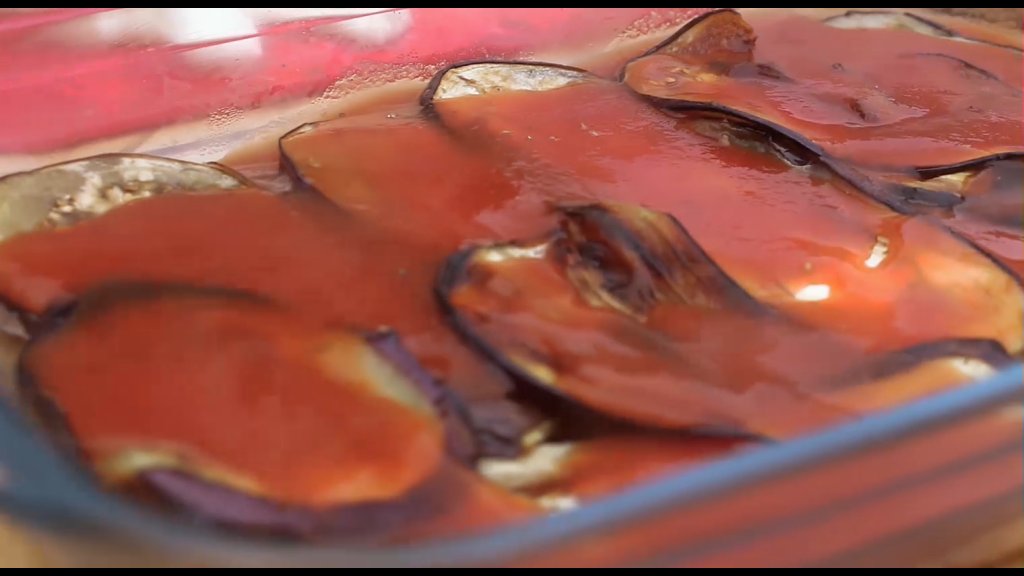 Parmigiana es también conocida como parmigiana di melanzane (significa berenjena en italiano), es un plato muy popular que se elabora con capas de berenjena en rodajas poco profundas o fritas y luego cubiertas con queso mozzarella y parmesano –nosotros sólo teníamos muzza- y salsa de tomate, antes de ser horneadas. Es muy común de las regiones del sur de Campania y Sicilia, a menudo se asocia con Nápoles, pero es habitual en la zona rural. Sobre el origen de la receta hay varias teorías y algunas de ellas ni siquiera señalan sus orígenes en ningún lugar del sur del país.