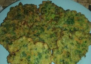 Picar bien la espinaca. Colocar en un bowl con sal y reservar 25 minutos hasta que libere líquido. Sumar el huevo, harina con polvo para hornear y la leche de a poco. Salpimentar. Freir dorando bien de ambos lados.